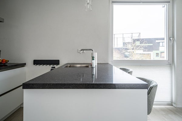 De moderne keuken is volledig uitgerust en praktisch ingedeeld. De hele verdieping is voorzien van comfortabele vloerverwarming.
