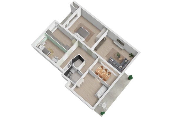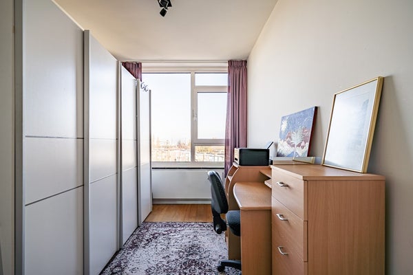 - De portiekflat heeft een woonoppervlakte van 98 m² en beschikt over 4 kamers, waarvan 3 slaapkamers;