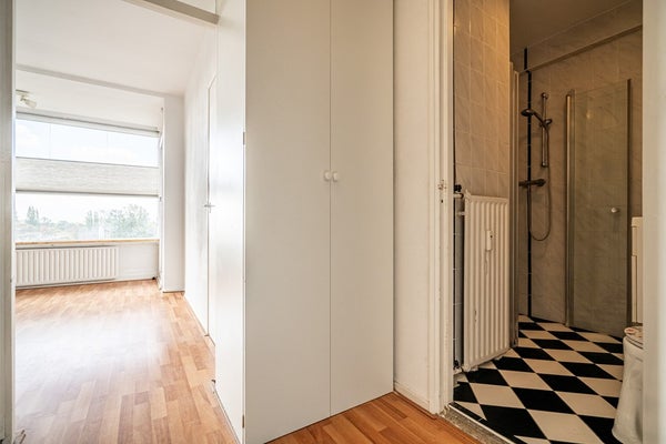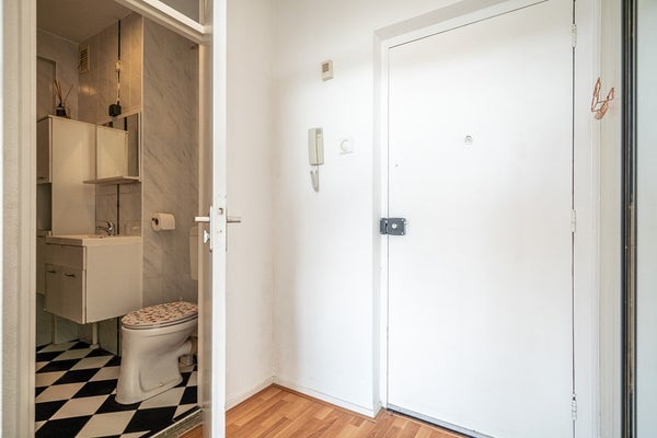 • De portiekflat heeft een woonoppervlakte van 34 m² en beschikt over 2 kamers, waarvan 1 slaapkamer;