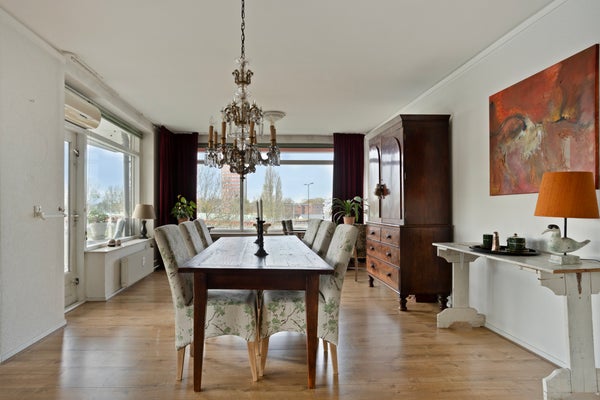 • De portiekflat heeft een woonoppervlakte van 129 m² en beschikt over 4 kamers, waarvan 2 slaapkamers;