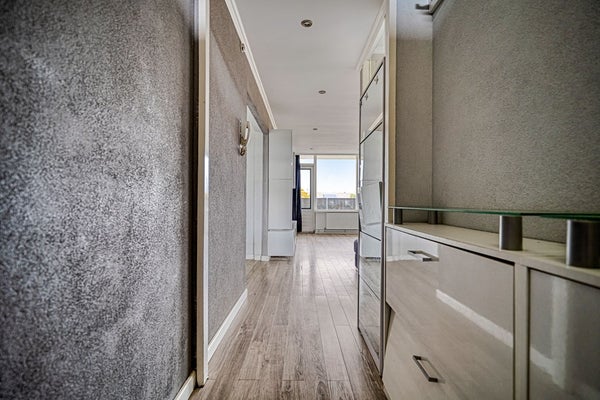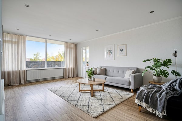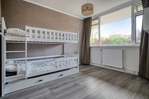 - De galerijflat heeft een woonoppervlakte van 100 m² en beschikt over 5 kamers, waarvan 4 slaapkamers;