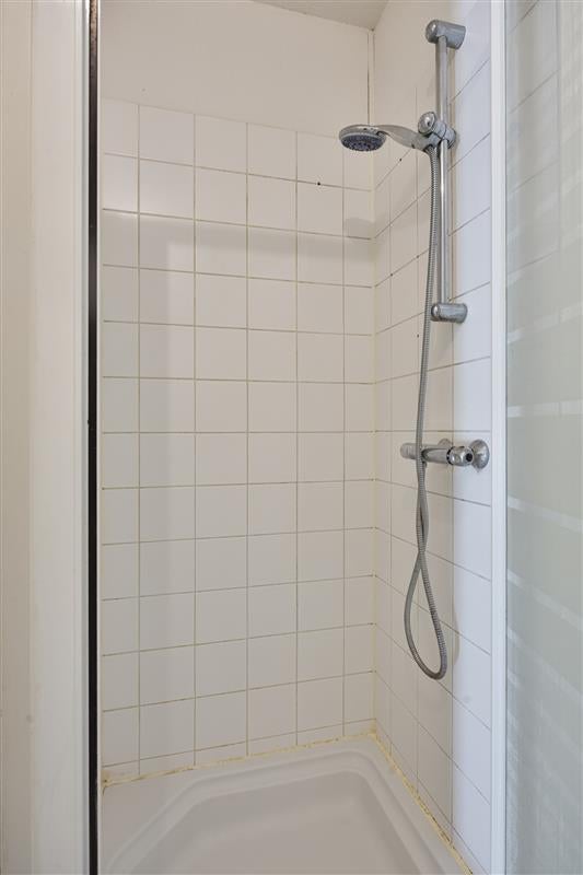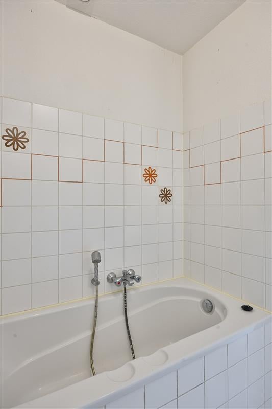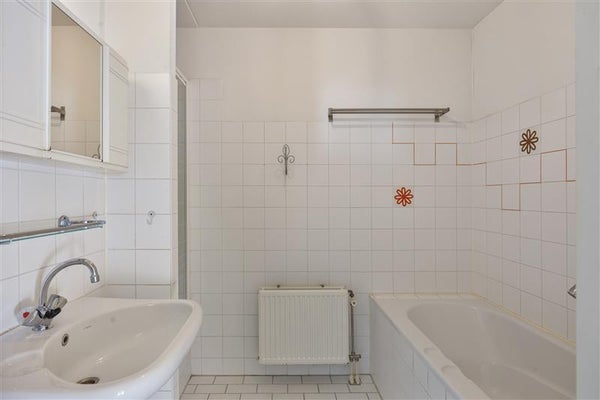 Ruime eenvoudige badkamer met ligbad, aparte douche, en wastafel. Het appartement heeft 2 slaapkamers. De kleinere maar alsnog ruime slaapkamer is gelegen aan de voorzijde van het appartement.