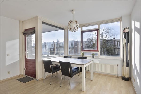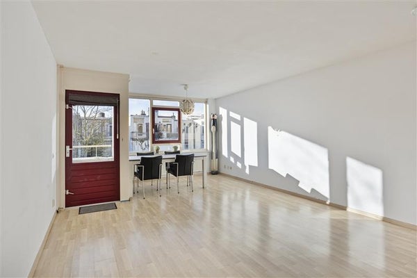 De royale en lichte woonkamer is gelegen aan de achterzijde van het appartement. Vanuit de woonkamer is er toegang tot het balkon dat is gelegen op het zuidwesten.
