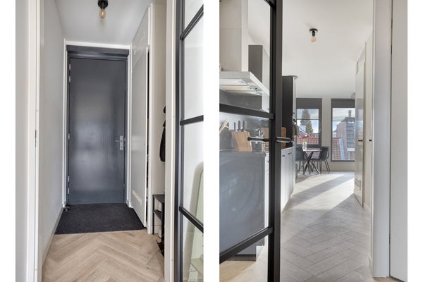 - De galerijflat heeft een woonoppervlakte van 45 m² en beschikt over 2 kamers, waarvan 1 slaapkamer;