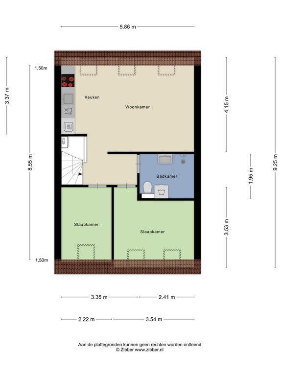 - De bovenwoning heeft een woonoppervlakte van 51 m² en beschikt over 3 kamers, waarvan 2 slaapkamers;