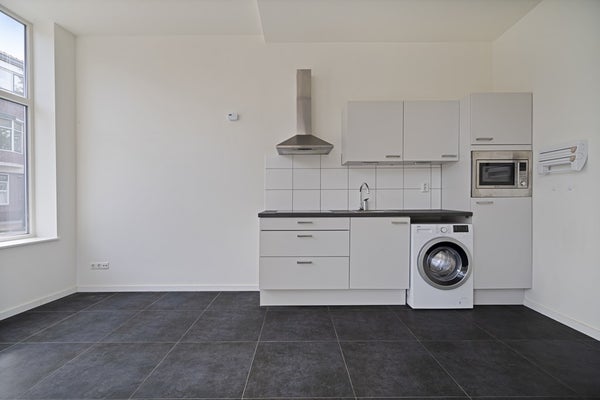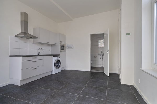 This apartment is located a short distance from Leiden's city center. The apartment is 22 m² and features a living room with an open-plan kitchen, and a bathroom with a shower, toilet, and sink. The apartment is located at the front of the building on the ground floor of Lage Rijndijk.