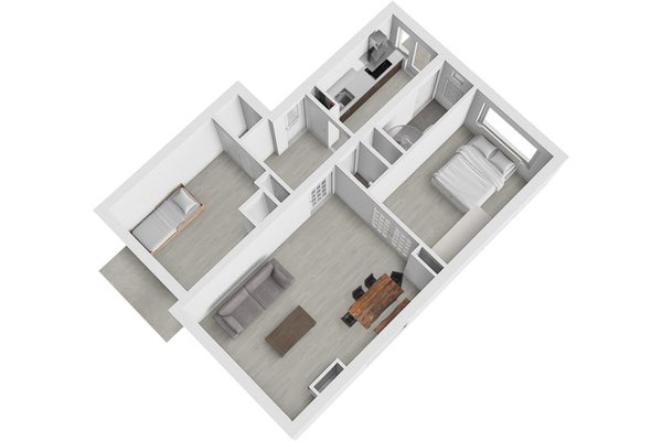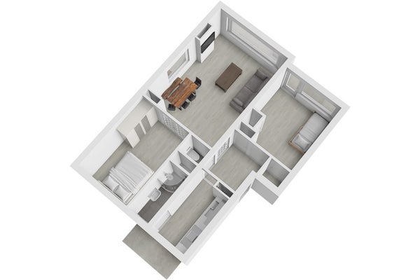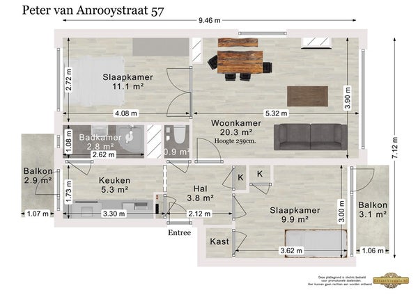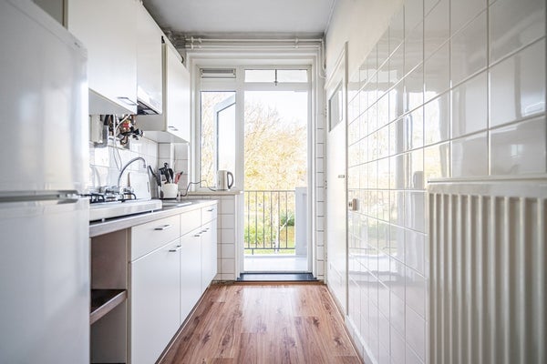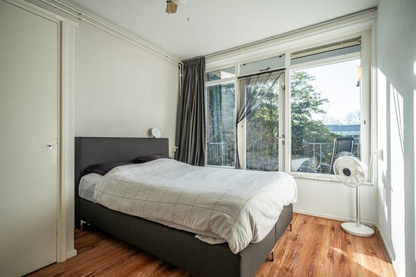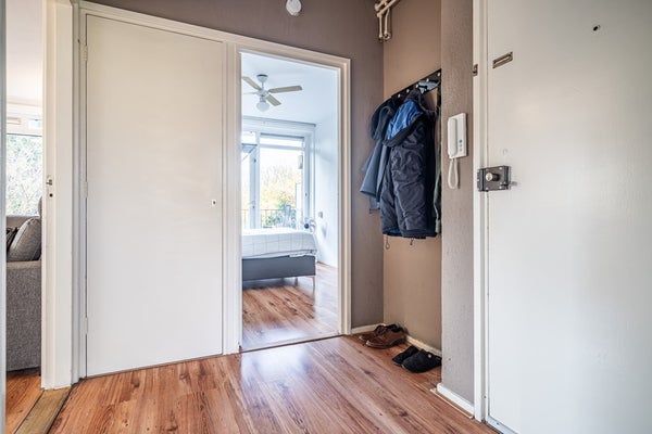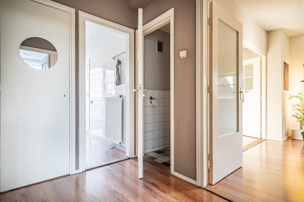 - De portiekflat heeft een woonoppervlakte van 60 m² en beschikt over 3 kamers, waarvan 2 slaapkamers;