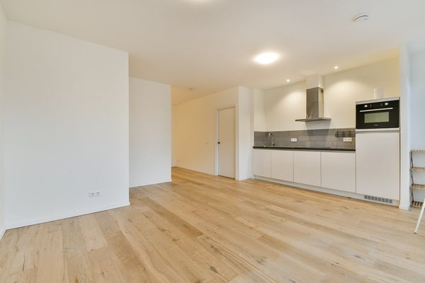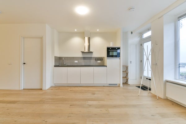 De keuken is praktisch ingericht en voorzien van een koel-vriescombinatie, combimagnetron, vaatwasser, inductiekookplaat en afzuigkap, waardoor je over alle gemakken beschikt om comfortabel te koken. De slaap/werkkamer vindt u aan de achterzijde van het appartement. Verder nog een ruimte achter de woonkamer, half gescheiden door een wand waar ook een slaapkamer gecreëerd kan worden.