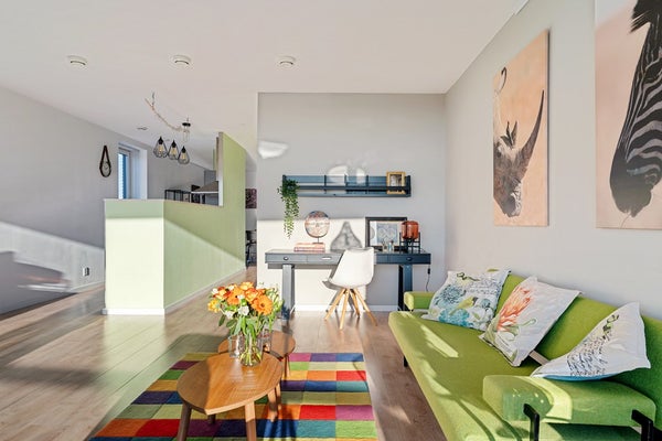 • De tussenverdieping heeft een woonoppervlakte van 91 m² en beschikt over 3 kamers, waarvan 2 slaapkamers;