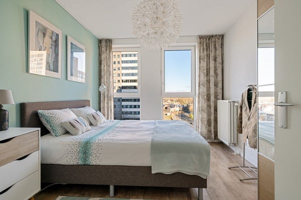 Gelegen op de 7de etage, met een panoramisch uitzicht over Leiden, vind je dit luxe appartement. Naast het prachtige uitzicht, beschikt de woning onder andere over een eigen parkeerplaats, twee slaapkamers en een zeer ruime zit-en eetkamer. Altijd al op zoek geweest naar hét appartement? Dit is je kans!