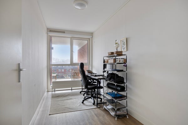 - De galerijflat heeft een woonoppervlakte van 80 m² en beschikt over 3 kamers, waarvan 2 slaapkamers;