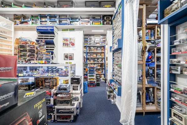 The 44 m² business space is neatly finished, painted neutral white, and equipped with modern LED lighting. There's also an additional storage room of approximately 7.5 m², furnished with a workbench and connections for a washer and dryer.
