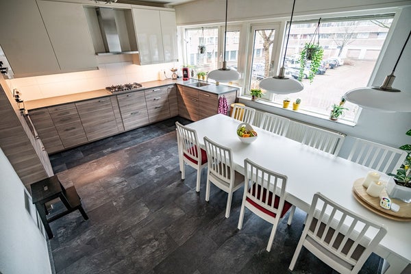 Combining living and working at one address? It's a unique opportunity here. This well-maintained and surprisingly spacious 4-room apartment (formerly 5 rooms) features a generous 44 m² of business space (garages). Located in the popular Ouderzorg neighborhood in Leiderdorp, with all amenities within easy reach.