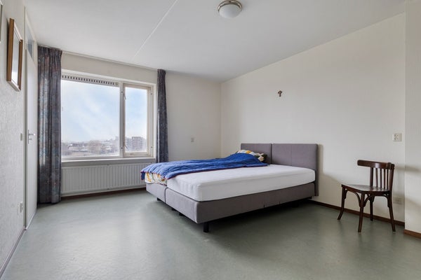Terug naar de entree treffen we de garderobe, een separaat toilet en de tweede slaapkamer. En wat voor één... Dit is zó groot dat sommige mensen dit formaat als woonkamer zouden bestempelen – en dat begrijpen we helemaal. Ideaal als master bedroom, werkkamer of luxe logeerruimte.