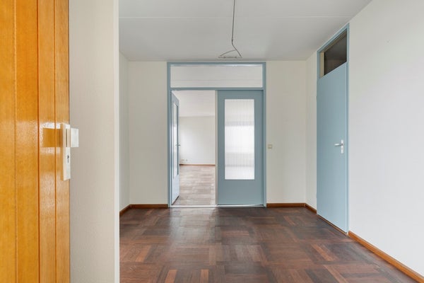 Via de lift of trap bereiken we de derde etage. Zodra je de entree binnenstapt, voel je het meteen: ruimte. De royale overloop zet direct de toon. De deuren naar de woonkamer trekken je als vanzelf die kant op... en terecht. We lopen naar binnen en eerlijk is eerlijk: OMG.