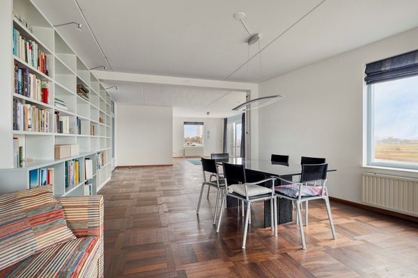 De woonkamer is bijna 80 m² groot en badend in het licht. Aan werkelijk elke zijde grote raampartijen, waardoor je continu in contact staat met buiten. Water, polder, groen en lucht – overal waar je kijkt. Het uitzicht is hier elke dag anders en nooit saai.