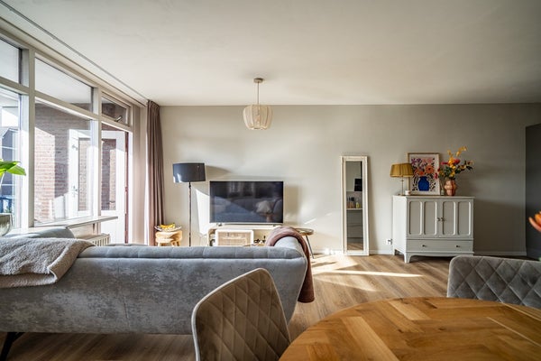 Via de woonkamer bereikt u het ruime en zonnige balkon, waar u heerlijk kunt genieten van de middag- en avondzon.