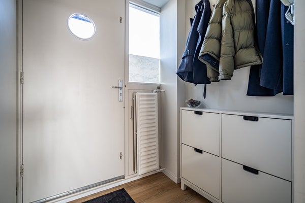 Entrance hall with meter cupboard and separate room with the central heating system (Intergas, November 2023, owned).
