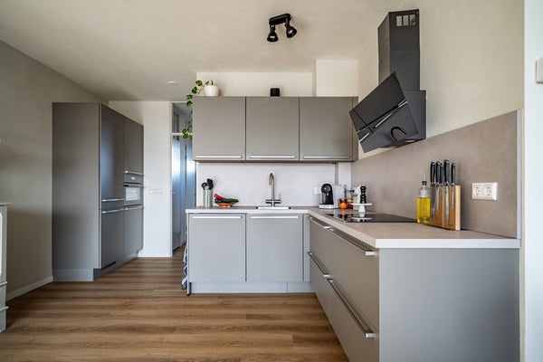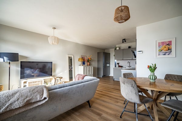 Het gehele appartement is afgewerkt met een mooie PVC-vloer, wat zorgt voor een rustige en moderne uitstraling.
