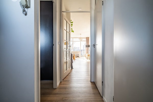 Located directly opposite the "De Winkelhof" shopping center, with all daily amenities literally around the corner, you'll find this bright apartment with a beautiful unobstructed view from the living room and a spacious southwest-facing balcony. Leiden city center is approximately a 10-minute bike ride away, and De Houtkamp park (with recreational facilities, a petting zoo, and a brasserie) is also within walking distance. It offers excellent public transport connections and is close to the A4 and N11 highways.