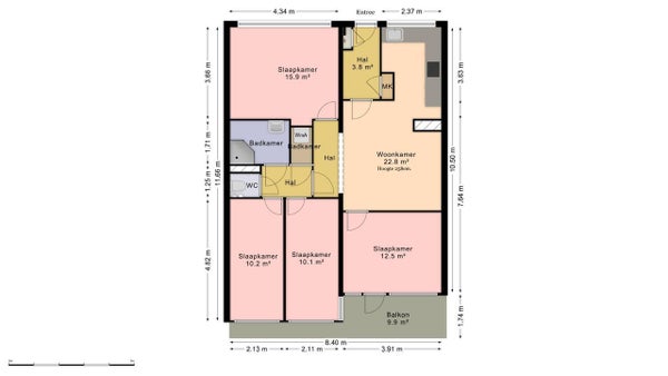 - De galerijflat heeft een woonoppervlakte van 92 m² en beschikt over 5 kamers, waarvan 4 slaapkamers;
