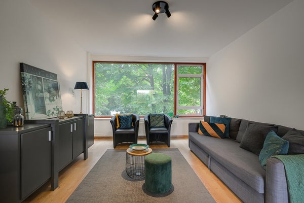 - De portiekflat heeft een woonoppervlakte van 74 m² en beschikt over 3 kamers, waarvan 2 slaapkamers;