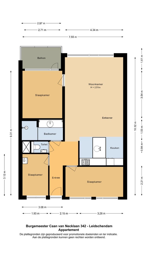 • De galerijflat heeft een woonoppervlakte van 75 m² en beschikt over 4 kamers, waarvan 3 slaapkamers;