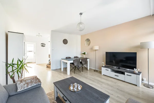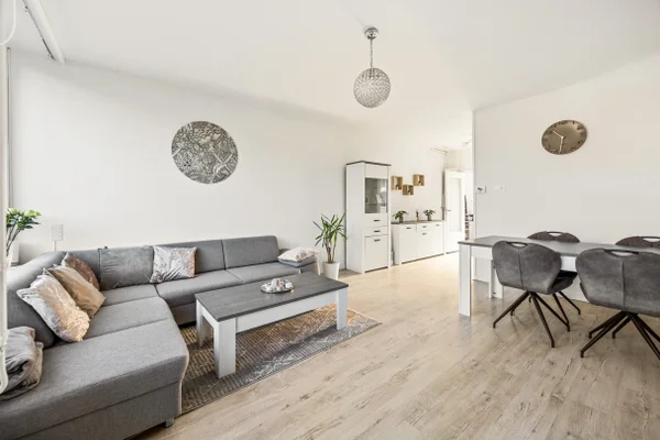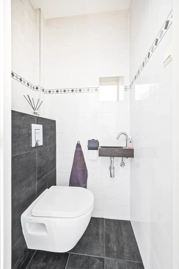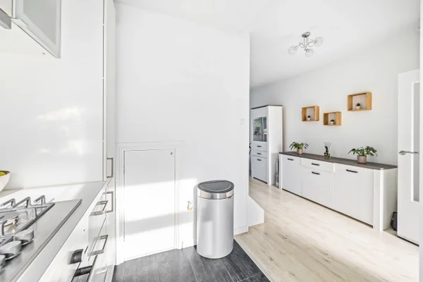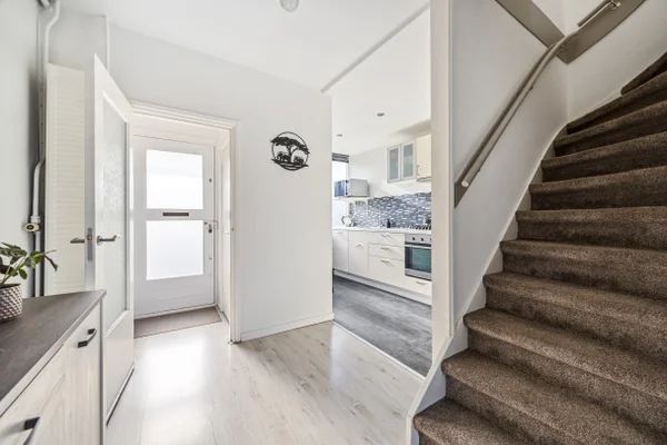 De hal op de eerste verdieping biedt toegang tot een moderne woonkamer (ca. 24 m²) en een open keuken. Boven zijn er drie slaapkamers en een vernieuwde badkamer met ligbad. Een ideale woning voor comfortabel wonen!