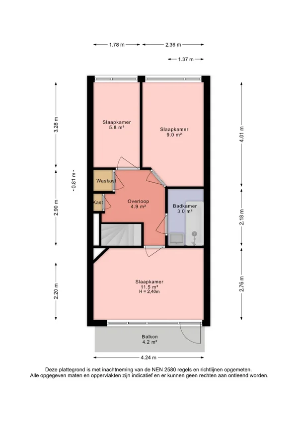 - De galerijflat heeft een woonoppervlakte van 79 m² en beschikt over 4 kamers, waarvan 3 slaapkamers;