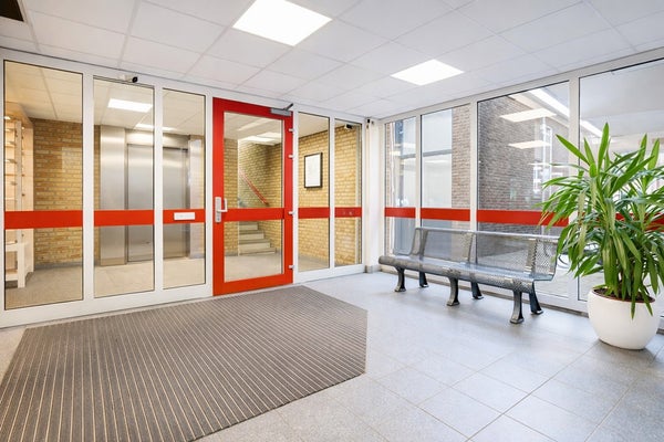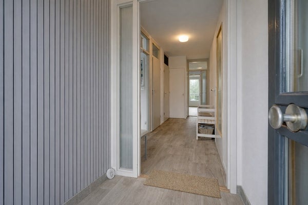 Afgesloten portiek met bellentableau en brievenbussen. Vanuit de centrale hal zijn de lift en het trappenhuis bereikbaar. Tevens is er toegang tot de privéberging op de begane grond en de parkeerplaatsen aan de achterzijde van het complex.