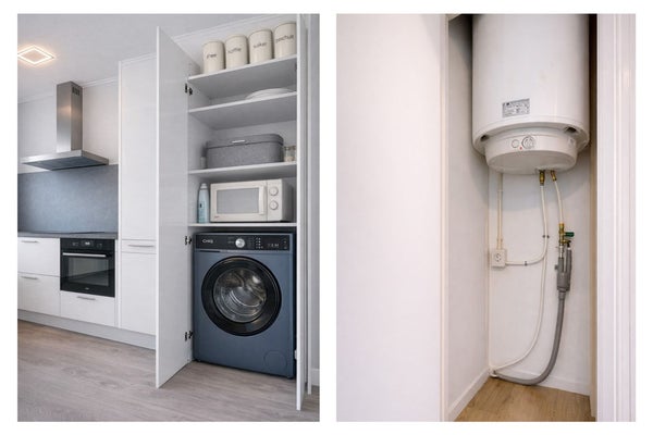 80-liter elektrische boiler in eigendom en ook netjes weggewerkt in een kast