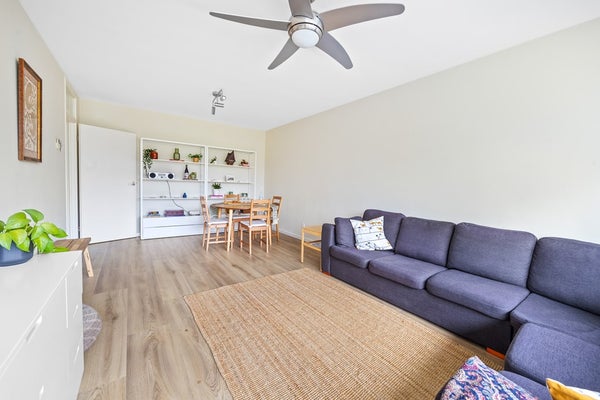 - De galerijflat heeft een woonoppervlakte van 83 m² en beschikt over 3 kamers, waarvan 2 slaapkamers;