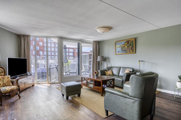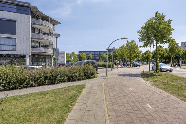 Entree, garderobe, hal met video intercom, aansluitend de wasruimte met wasmachine- en drogeraansluiting, mechanische ventilatie en de cv-installatie (AWB uit 2015). Gang met aansluitend twee ruime slaapkamers, waarvan één voorzien van airco (2020), separaat toilet met fonteintje, badkamer met inloopdouche, wastafelmeubel, hangcloset en designradiator. Doorgang naar de lichte woonkamer met veel raampartijen, airco (2020) en balkon op het zuiden gelegen. Luxe keuken (2021) met plavuizen vloer, voorzien van vaatwasser, dubbele spoelbak, inductie kookplaat, afzuigkap, combi oven, carrouselkast, vrijstaande koel/vries combinatie en magnetron.