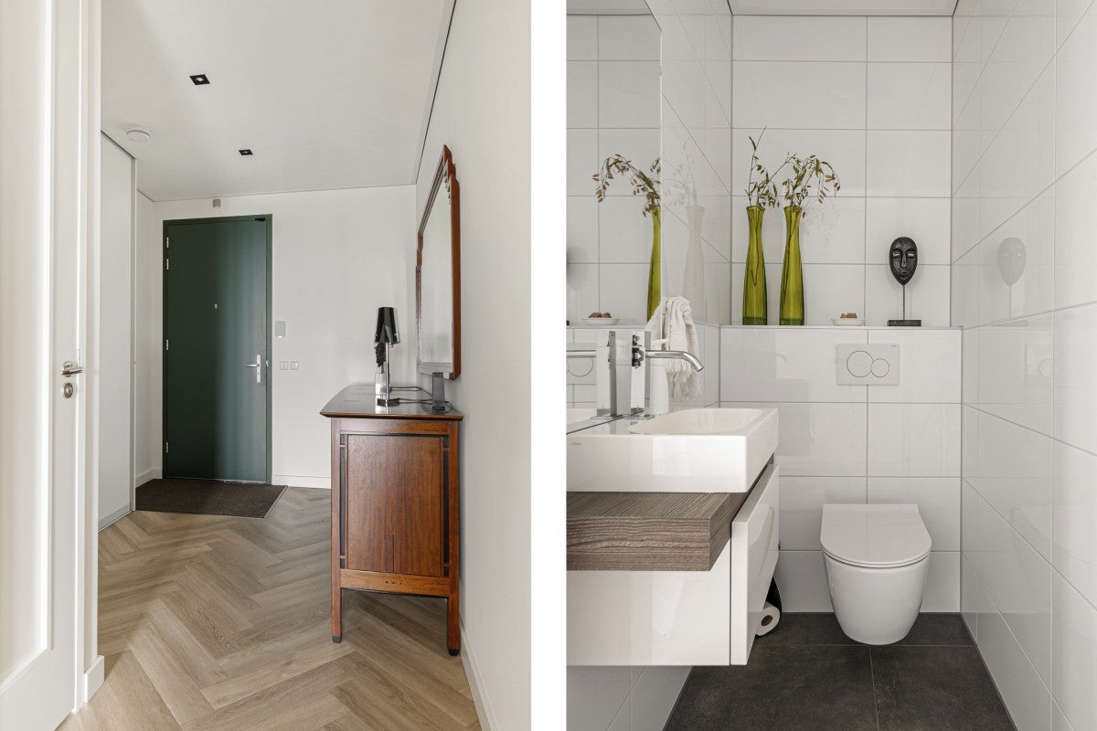 Het appartement heeft drie ruime slaapkamers, waarbij de hoofdslaapkamer een inloopkast heeft. De badkamer is luxe ingericht met een brede wastafel, stoomdouche en vrij hangend toilet. Met een inpandige berging en een externe berging voor extra opslag, biedt dit appartement optimaal comfort. De centrale hal van het complex heeft twee liften en beveiligingsvoorzieningen.