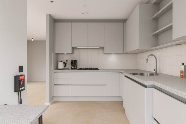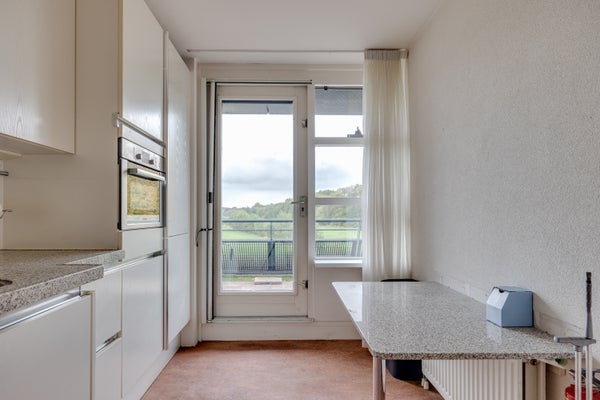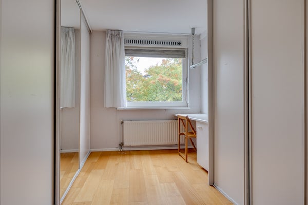 - De portiekflat heeft een woonoppervlakte van 94 m² en beschikt over 3 kamers, waarvan 2 slaapkamers;
