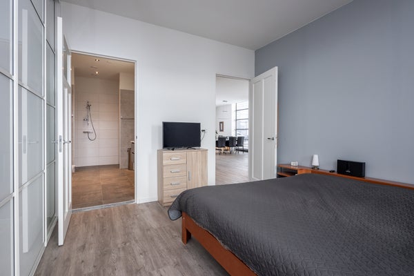 - De galerijflat heeft een woonoppervlakte van 150 m² en beschikt over 3 kamers, waarvan 2 slaapkamers;
