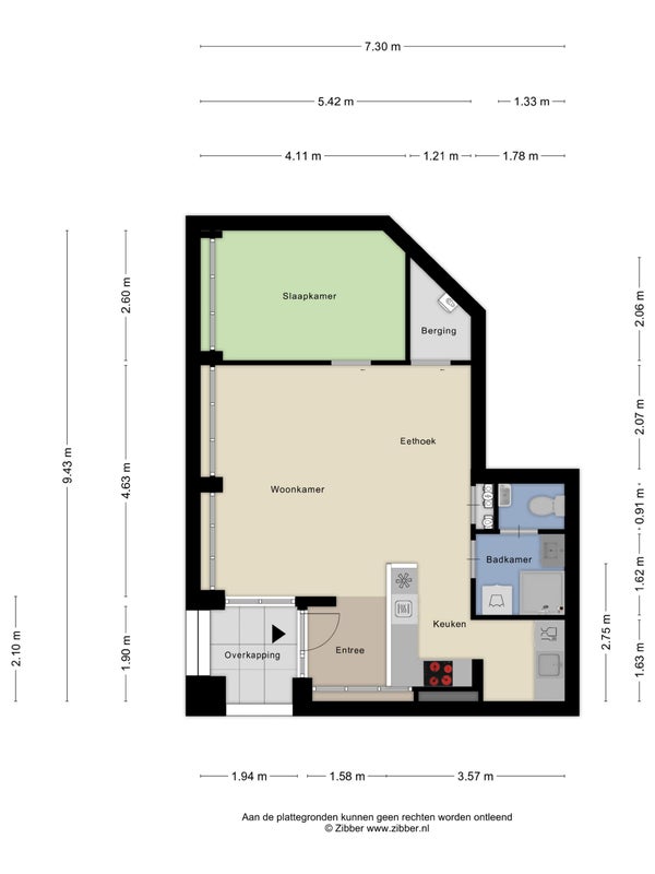 - De galerijflat heeft een woonoppervlakte van 53 m² en beschikt over 2 kamers, waarvan 1 slaapkamer;