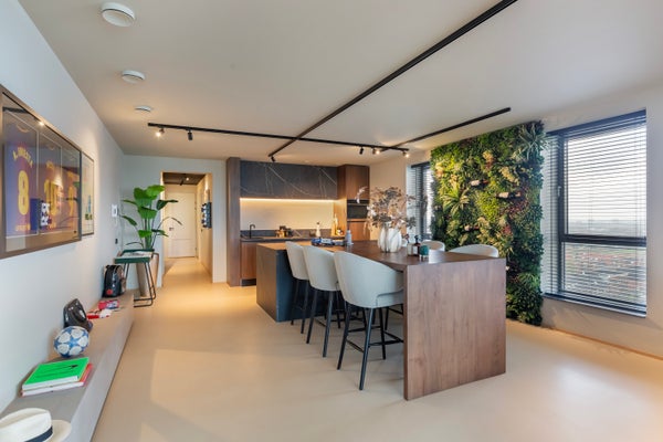 - De galerijflat heeft een woonoppervlakte van 108 m² en beschikt over 2 kamers, waarvan 1 slaapkamer;