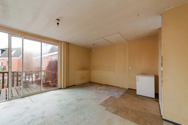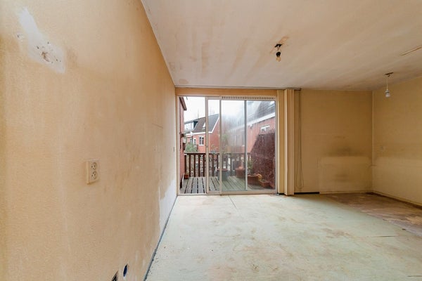 De lichte woonkamer biedt voldoende ruimte om leuk en praktisch ingericht te worden. Vanuit de woonkamer stap je door de schuifpui zo het zonnige terras op.
