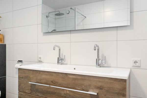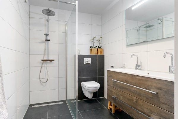Dubbele wastafel, Inloopdouche, Toilet, Wastafelmeubel