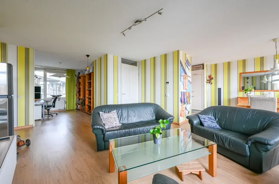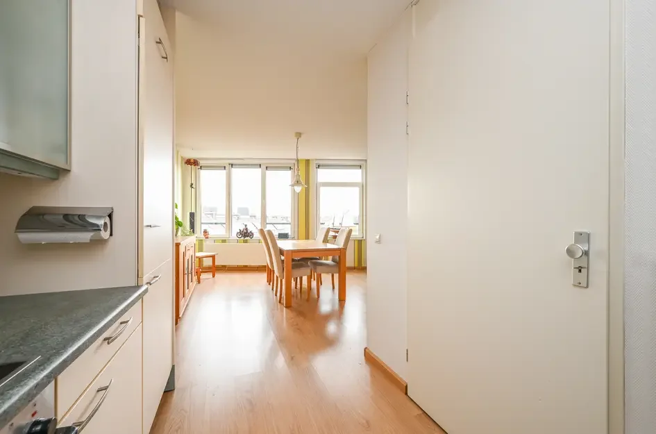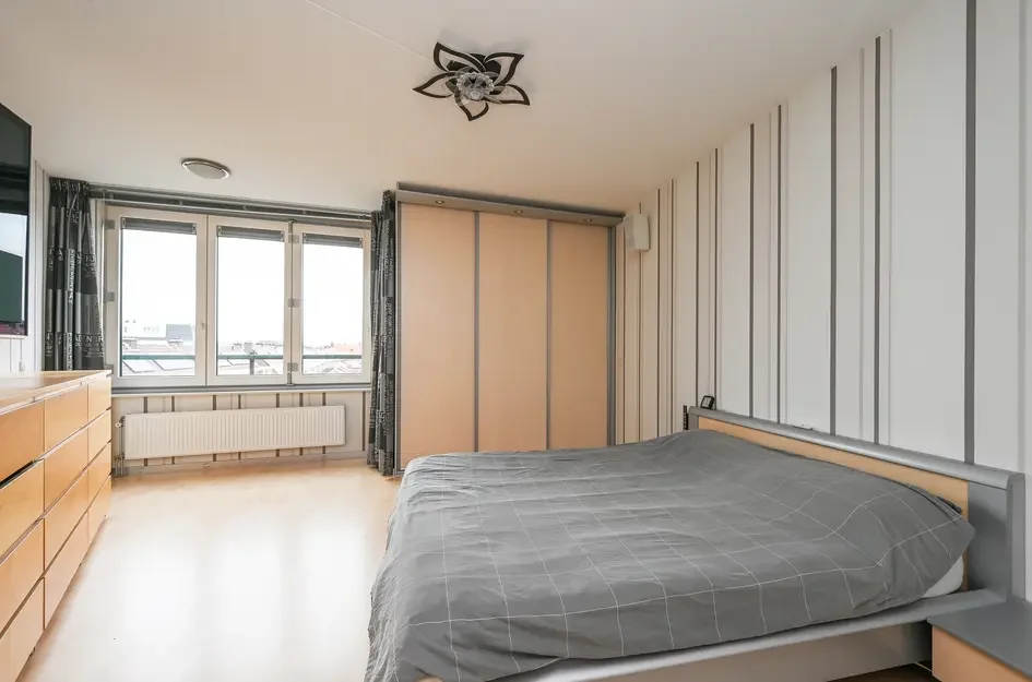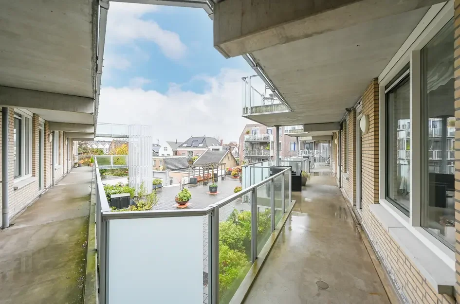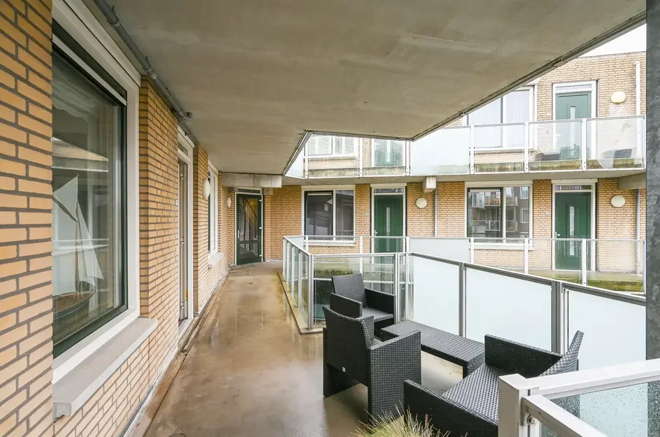 - De galerijflat heeft een woonoppervlakte van 102 m² en beschikt over 3 kamers, waarvan 2 slaapkamers;
