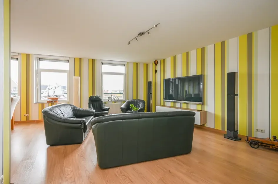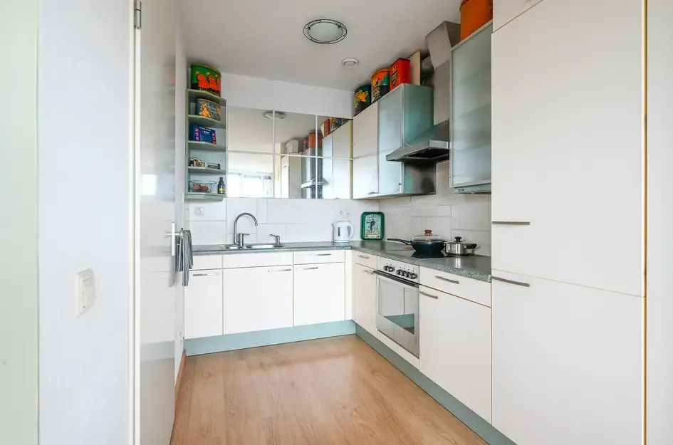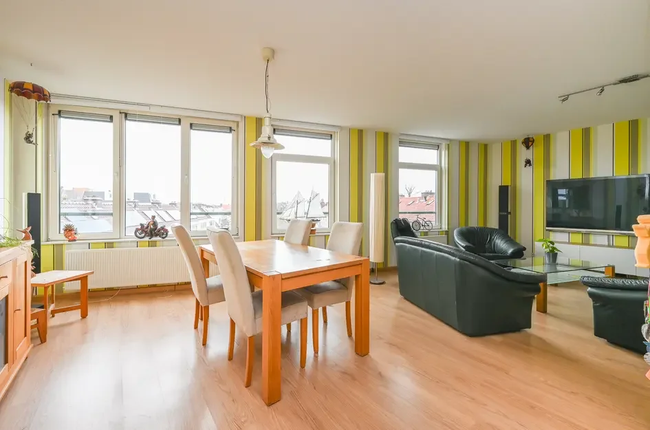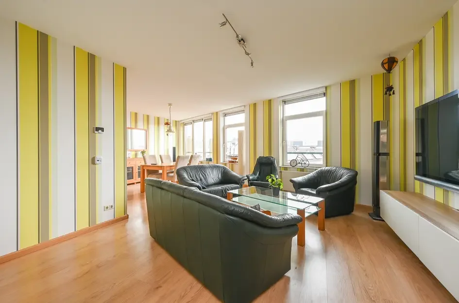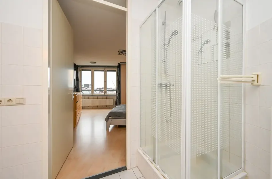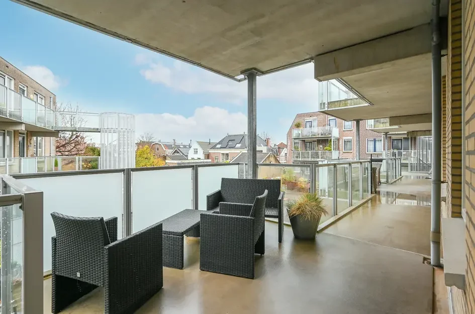 - De galerijflat heeft een woonoppervlakte van 102 m² en beschikt over 3 kamers, waarvan 2 slaapkamers;