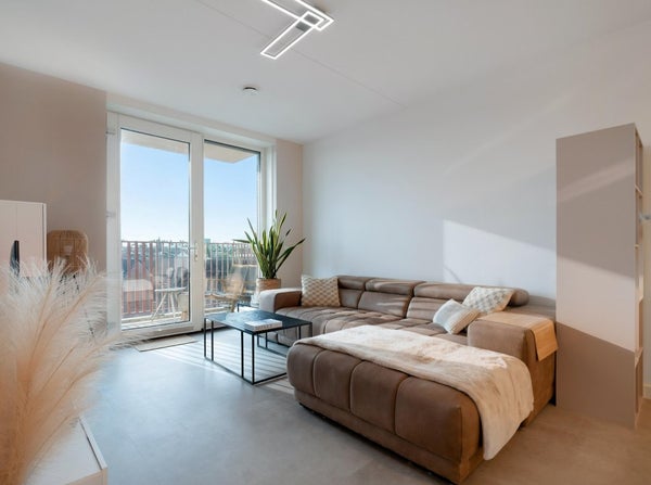 - De galerijflat heeft een woonoppervlakte van 82 m² en beschikt over 3 kamers, waarvan 2 slaapkamers;