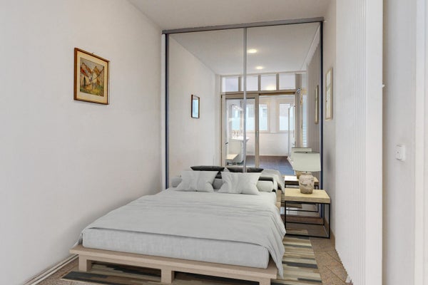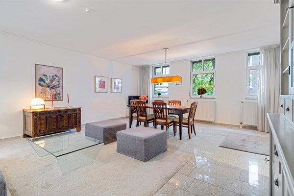 • De portiekflat heeft een woonoppervlakte van 121 m² en beschikt over 3 kamers, waarvan 2 slaapkamers;