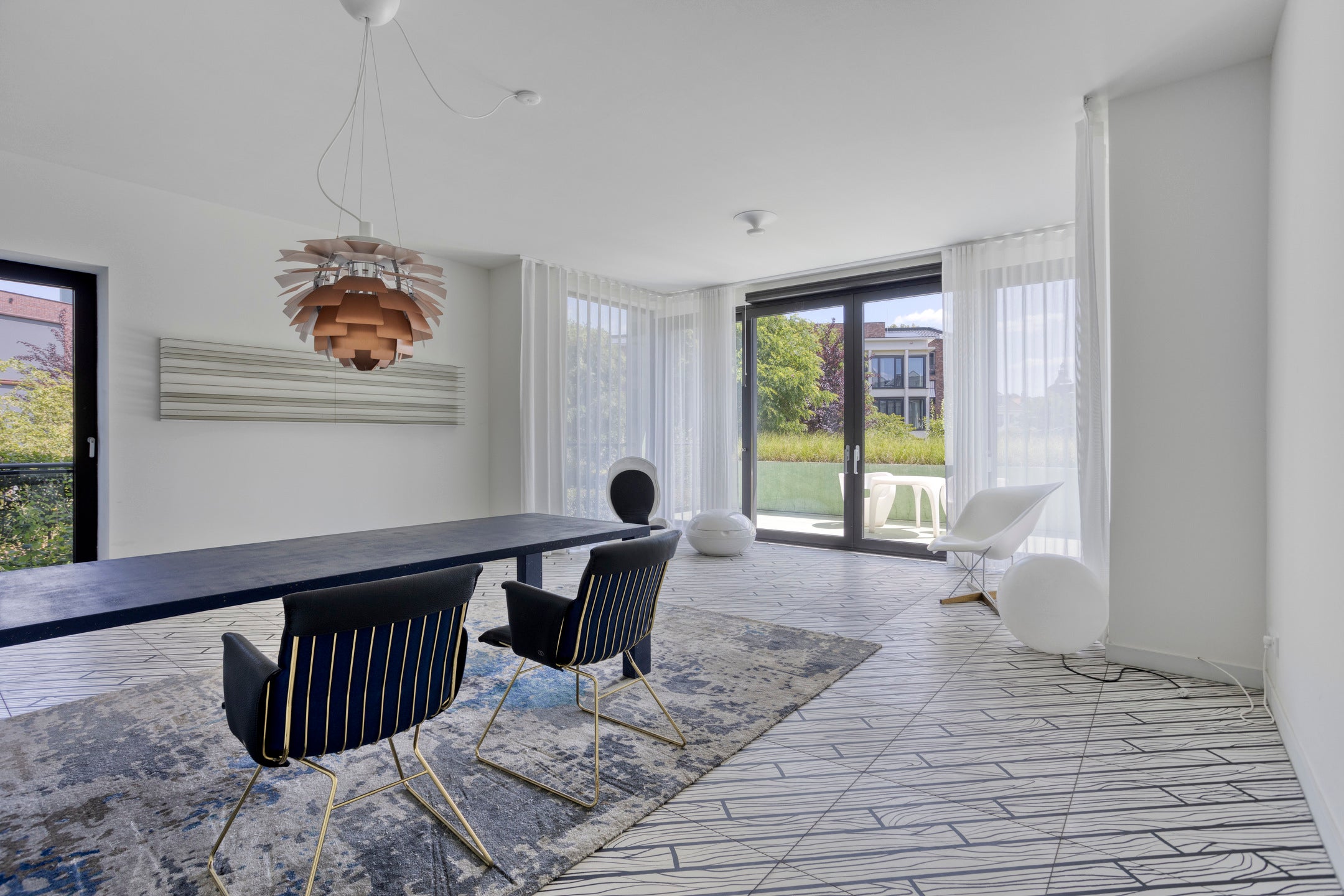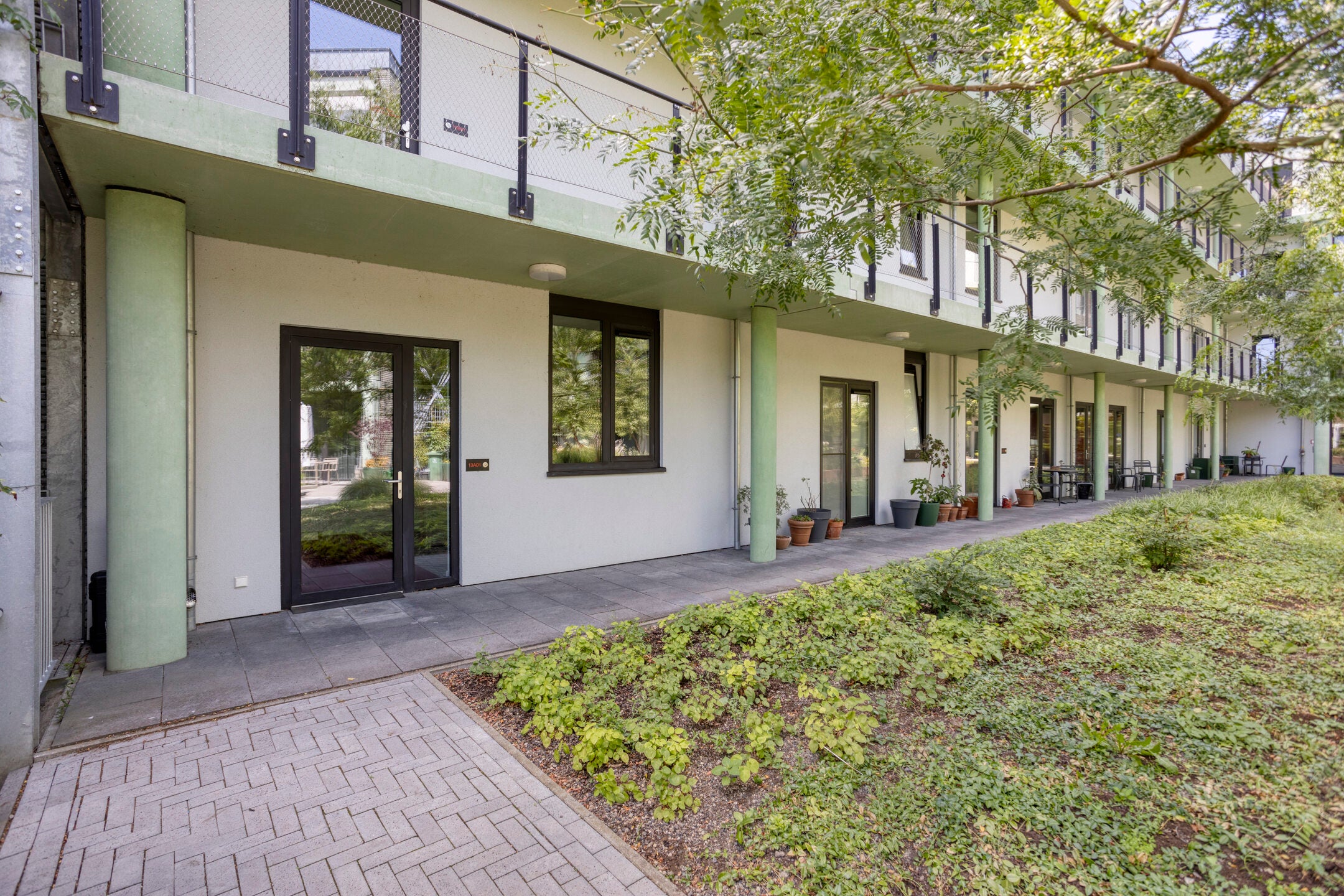 De woning beschikt over een royale open indeling op de begane grond, die gemakkelijk kan worden aangepast door middel van verrijdbare wandpanelen. De moderne keuken is voorzien van hoogwaardige apparatuur van merken zoals Neff en Liebherr. De slaapkamer biedt toegang tot een balkon, en de badkamer is stijlvol afgewerkt met een ruime inloopdouche en dubbele wastafel. Grote ramen zorgen voor veel lichtinval en geven toegang tot het terras op het zuidoosten.