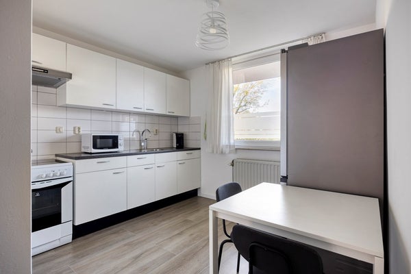 - De portiekflat heeft een woonoppervlakte van 74 m² en beschikt over 3 kamers, waarvan 2 slaapkamers;