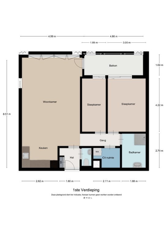 - De portiekflat heeft een woonoppervlakte van 79 m² en beschikt over 3 kamers, waarvan 2 slaapkamers;