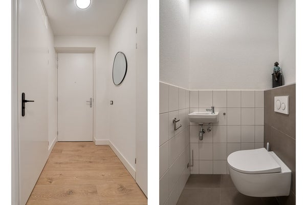 Via de gezamenlijke entree met brievenbussen en bellentableau bereikt u het instapklare appartement op de derde verdieping. U komt het appartement binnen door de ruime entree (ca. 8 m²). Vanuit hier heeft u toegang tot een inbouwkast, de toiletruimte, de badkamer, twee slaapkamers en de woonkamer. De gehele woning is voorzien van comfortabele vloerverwarming. De moderne toiletruimte is stijlvol betegeld en beschikt over een hangcloset en een fonteintje.