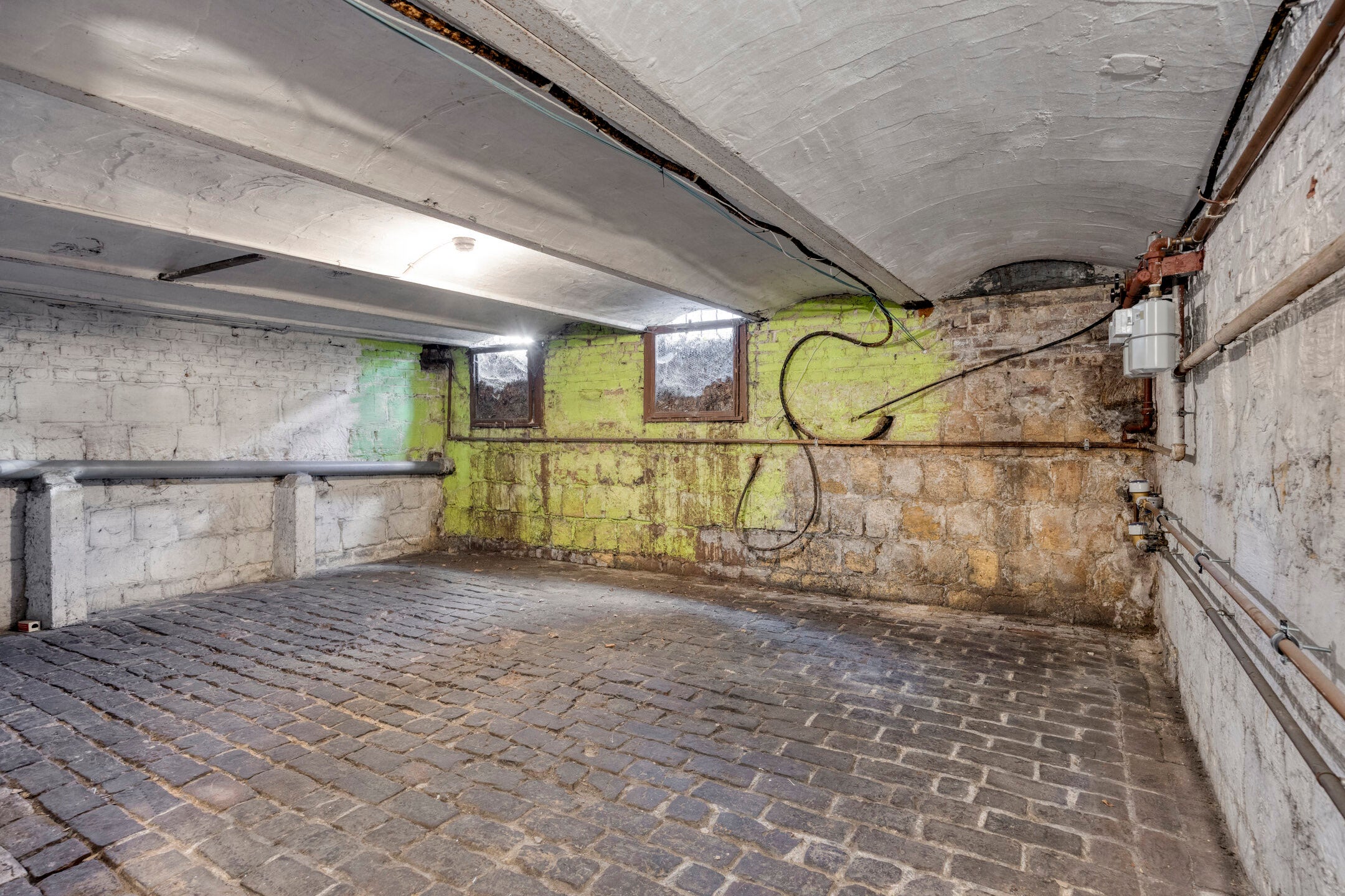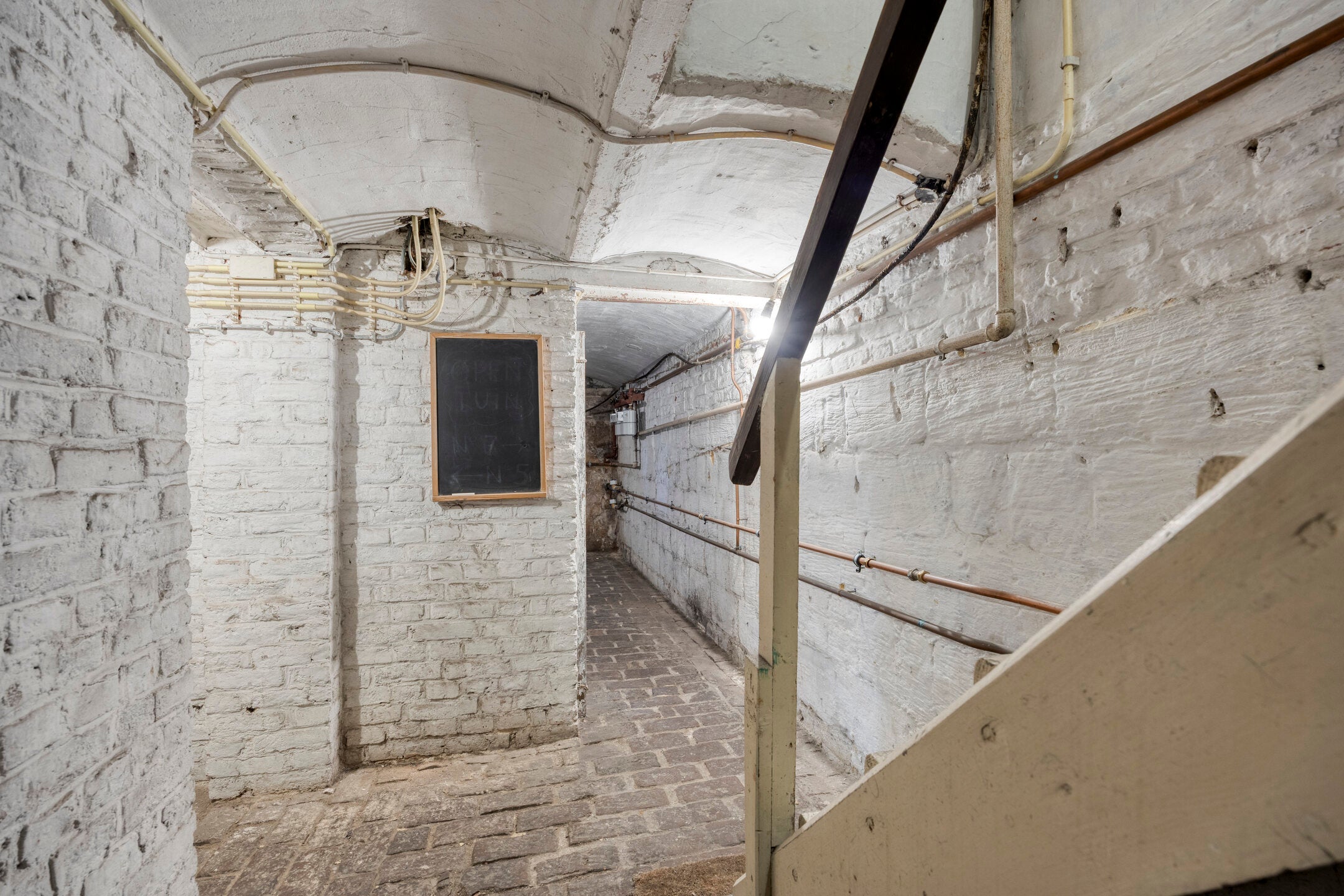 Het herenhuis aan de Hertogsingel 34A/B in Maastricht, op loopafstand van het stadscentrum, biedt een unieke kans. Het pand is momenteel verdeeld in een beneden- en bovenwoning, ieder met eigen huisnummer, maar niet kadastraal gesplitst. Dit schept mogelijkheden voor dubbele bewoning of herindeling. In het souterrain bevinden zich twee kelders, waar één ruimte ruimte biedt voor de boiler en de ander voor de wasmachine. De benedenwoning heeft een entree met trapopgang, een kamer en suite met authentieke marmeren schouwen, en een eenvoudige keuken met toegang tot een ommuurde stadstuin. De bovenwoning beschikt over een woonkamer met balkon, drie slaapkamers en een dakterras. Er zijn voorzieningen zoals badkamers op elke verdieping en een bijkeuken. Het geheel kan naar eigen inzicht worden gemoderniseerd.