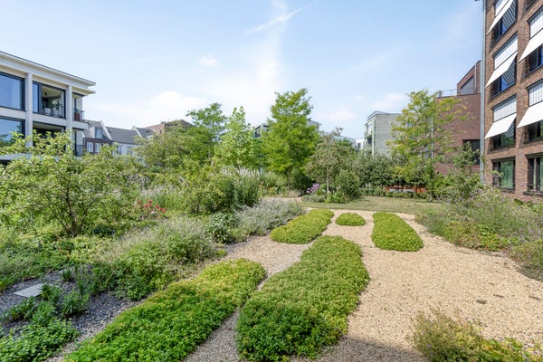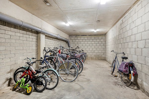 Gemeenschappelijke fietsenstalling bereikbaar vanuit het afgesloten parkeerterrein. Privé berging (5m²).